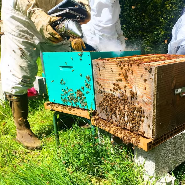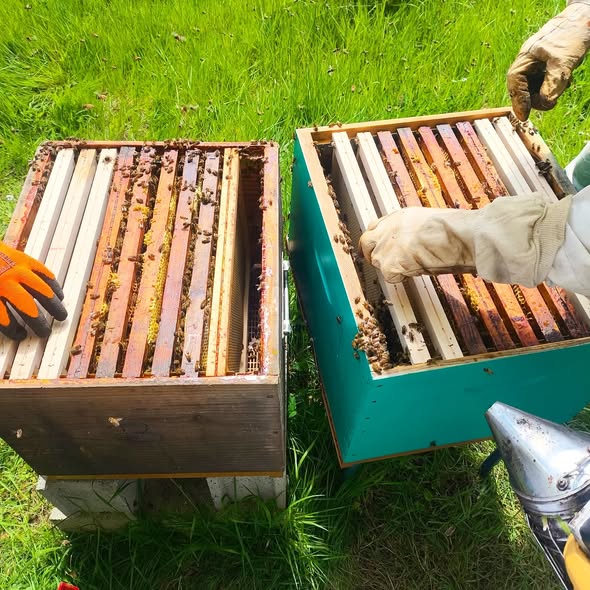C’est sous un magnifique soleil normand que, ce lundi 29 avril, nous avons pu entreprendre la division de notre deuxième ruche. ![]()