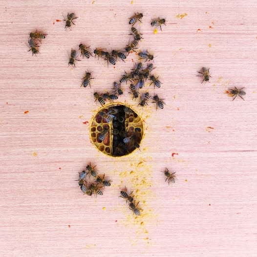 Les abeilles vibrent pour produire de la chaleur autour de la reine qui est placée au cœur de la grappe, où la température reste autour de 20–25°C. 🔥
